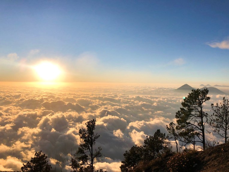 So, the actual hike on the first and main day of hiking takes around 5 to 6 hours and then another hour early in the morning on day two. Its steep, its not easy to walk up on the fragile ground at times, its hot (and at night super cold), but the view is so worth all the pain and seeing Fuego erupt from the base camp and again on top of Acatenango was one of the dopest travel experiences I have ever had. Nothing compares to standing on top of a volcano above the clouds, seeing the sun go down and then lava running down. Nature is crazy and so beautiful, I truly could have cried when we reached the very top.