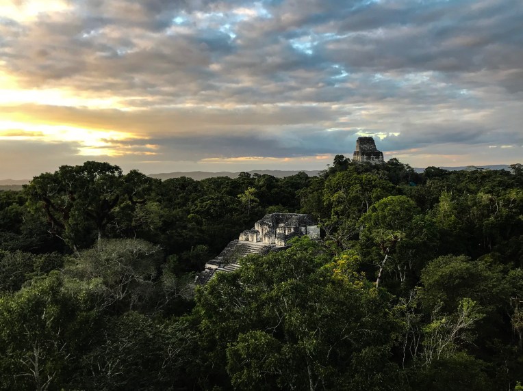 The last stop of the day will be the viewpoint for sunset. Around this time of the year, you can either be lucky and have an amazing view, of the sky will be completely cloudy. For us, it was a cloudy day almost the entire time, it just started open up right before sunset, so we at least got a little peak of the sun going down over the jungle. And that was our last experience in Guatemala before heading over to Belize.